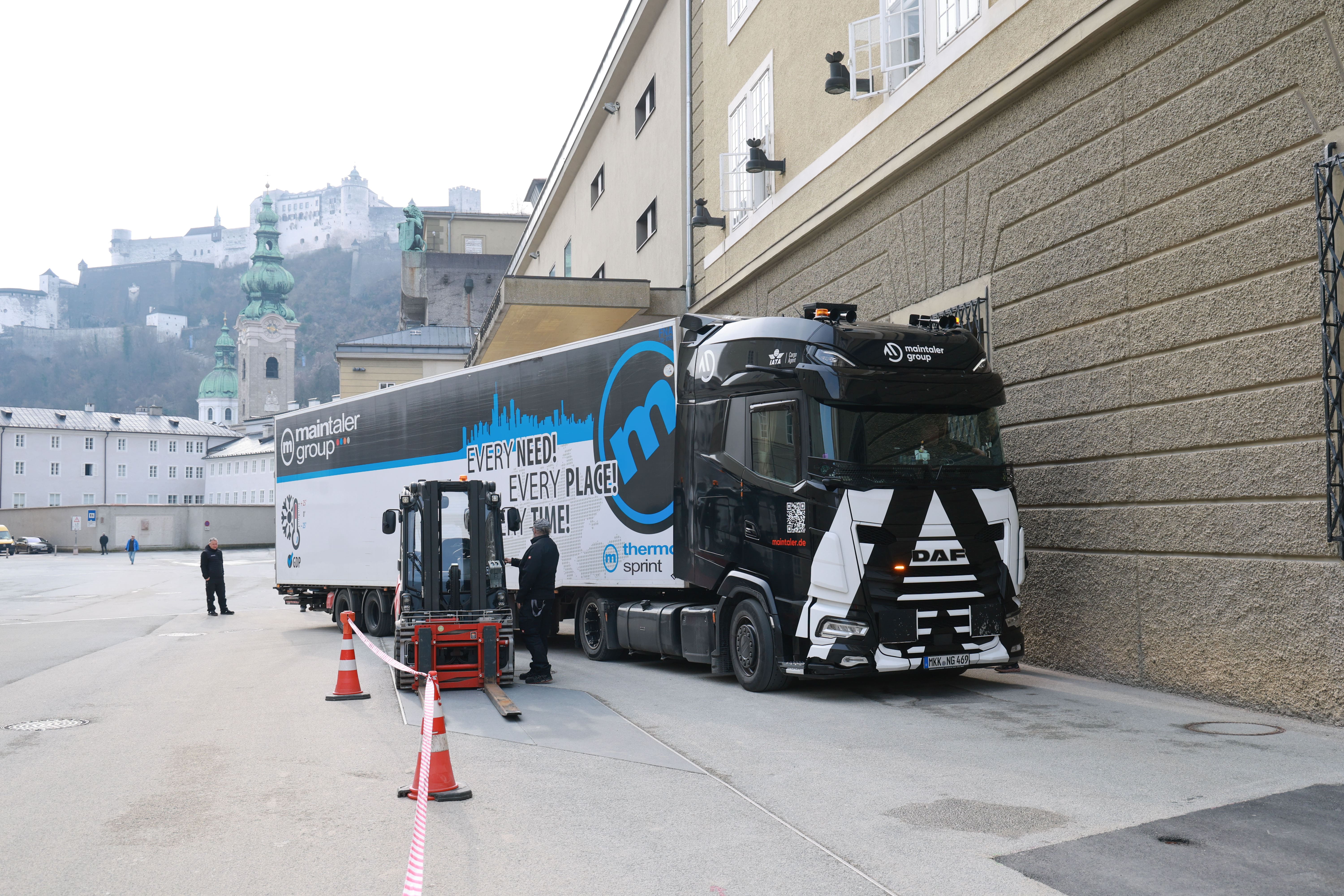 In der kurzen Zeit haben sich sowohl Fußgänger, Radfahrer, Kindergartengruppen, Zulieferer für die Hotels, Paketzusteller und Anrainer die Hofstallgasse mit den anliefernden Sattelschleppern geteilt. Nach drei Stunden ist alles in die Festspielhäuser verräumt, die LKWs verschwinden, der Puls vorm Großen Festspielhaus verlangsamt sich wieder. Nach der baulichen Erweiterung im Festspielbezirk werden zukünftig Anlieferungen über die neue Kaverne im Mönchsberg abgewickelt. „Das wird für die zuliefernden Sattelschlepper und für unsere Abläufe intern deutlich effizienter und sicherer für alle, die in der Hofstallgasse arbeiten und unterwegs sind,“ so Andreas Christ.